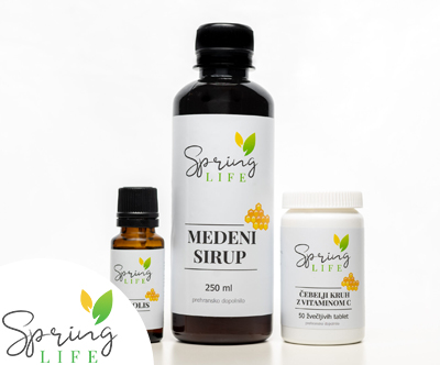 MEDENI ZAKLADI! SUPER CENA za Springlife medeni paket v lični embalaži: medeni sirup (250 ml) + propolis (20 ml) + čebelji kruh z vitaminom C (50 žvečljivih tablet)! Poštnina je brezplačna!