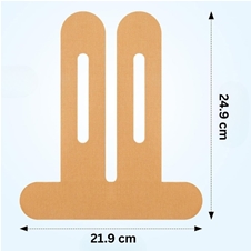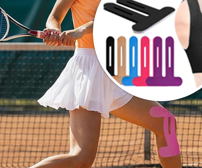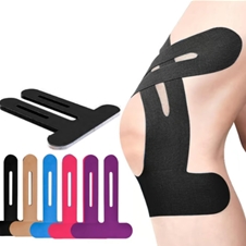 Uporaba:Podpora in zaščita kolena med športom in vadbo. Poskrbite, da bo koleno čisto in suho, preden nalepite trak. Po želji odrežite odvečen material in poskrbite, da se bo trak prilagajal kolenu. Odlepite papir na zadnji strani. Nalepite v smeri mišic.