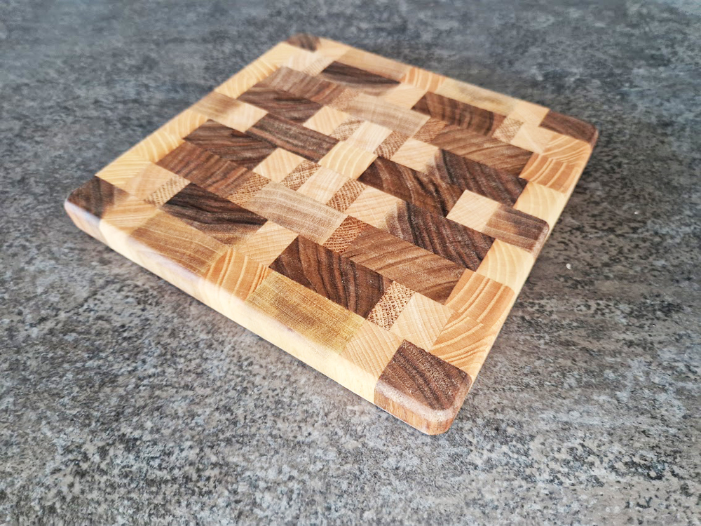 SUPER CENA za PREMIUM leseno ‘end grain’ desko za rezanje in serviranje! Ročno izdelana, z naravnim unikatnim videzom in izjemno trpežnostjo! Dimenzije S (cca 17 cm širine x 18 cm dolžine x debeline 1,9 cm)! Poštnina je brezplačna!