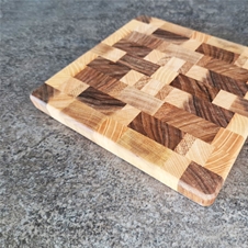 - Ponudba vsebuje: 1x PREMIUM leseno ‘end grain’ desko za rezanje in serviranje, dimenzije S (cca 17 cm širine x 18 cm dolžine x debeline 1,9 cm).