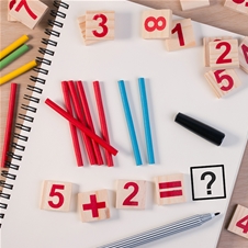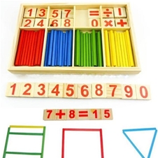 - Ponudba vsebuje: 1x paket za učenje matematike: 50 kosov lesenih paličic + 16 lesenih kosov s številkami in simboli + lesena škatla. Primerno za otroke od 3. leta naprej.