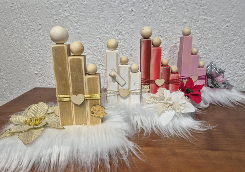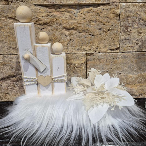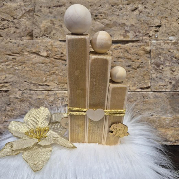 - Ponudba vsebuje: Ročno izdelan lesen komplet DRUŽINA z 2 osebama na lesenem podstavku dekorirano z božično zvezdo v 4 barvah! Velikost očeta in dedka cca. 12 cm, mati in babica cca. 10 cm in otroci 8 cm ali 6 cm ali 4 cm! DARILO: dojenček ali hišni ljubljenček (muca, kuža)!
