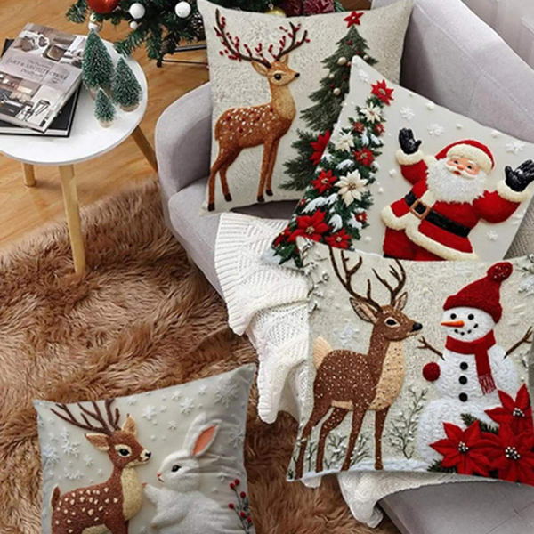 Motivi dopolnijo jedilni kot, dnevno sobo ali spalnico, ne glede na to, ali imate raje klasičen ali igriv praznični stil. Barve in potiski se lepo povežejo z namiznimi pogrinjki, odejami in svetlobnimi okraski. Ustvarite celoto, ki daje domu toplino in občutek praznika.