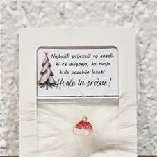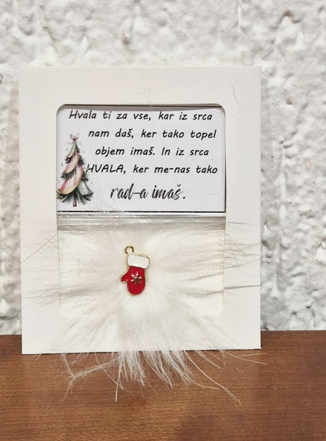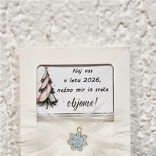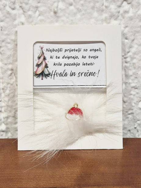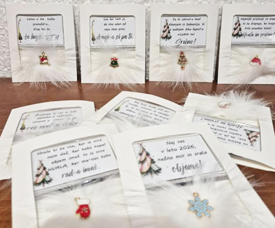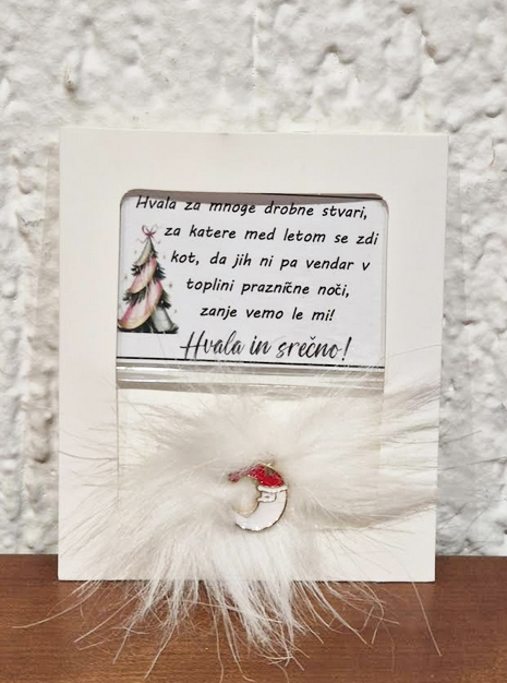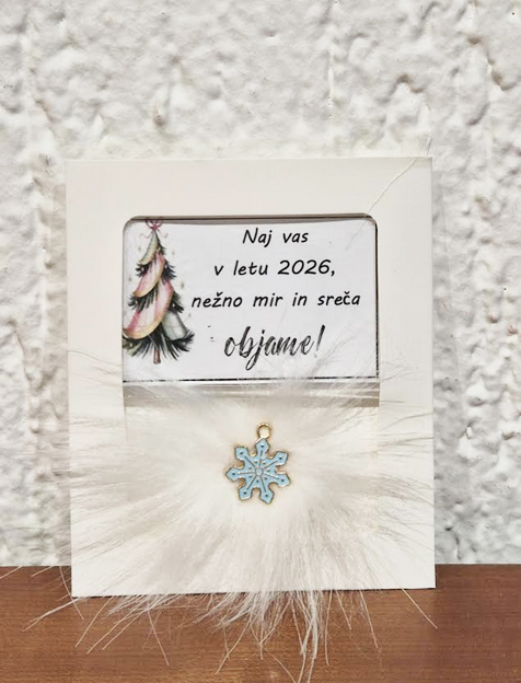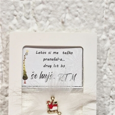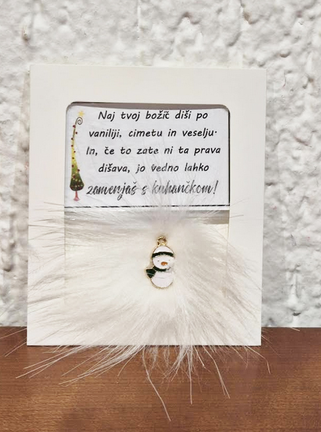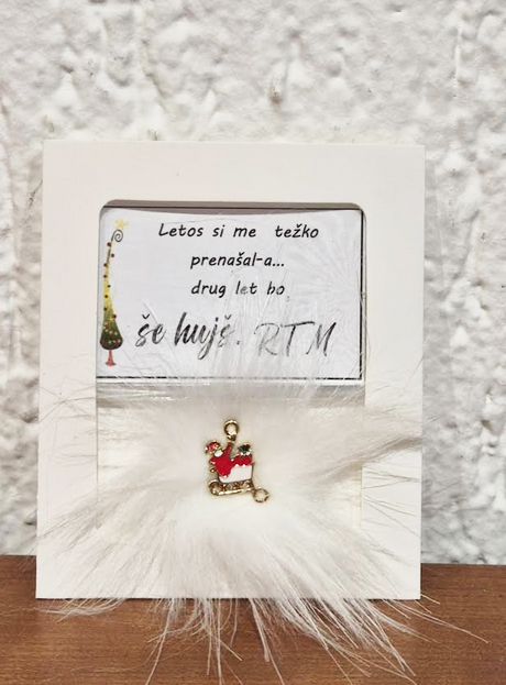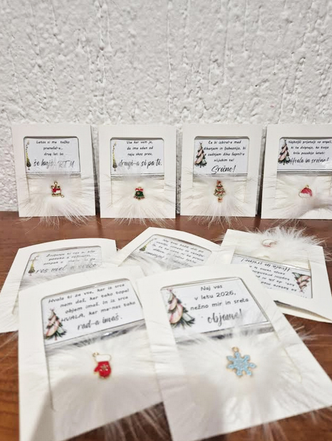 • Ponudba vsebuje: 2x božični magnet z napisom, lično zapakiran in praznično okrašen. Izbirate med 5 zabavnimi napisi: L1 – Življenje ti res ni bilo posuto z rožicami, ampak z mano si pa res mel-a srečo; L2 – Naj tvoj božič diši po vaniliji, cimetu in veselju. In, če to zate ni ta prava dišava, jo vedno lahko zamenjaš s kuhančkom; L3 – Vse, kar vem, je, da ima eden od naju skoz prav, drugi-a si pa ti; L4 – Letos si me težko prenašal-a… drug let bo še hujš. RTM; L5 – Don’t worry, be happy and say »jebi ga«.) ali 5 toplimi prazničnimi voščili: V1 (Partner) – Če bi izbiral-a med dihanjem in ljubeznijo, bi v zadnjem dihu šepnil-a: »Ljubim te!« Srečno; V2 (Babi/Dedi) – Hvala ti za vse, kar iz srca nam daš. Hvala, ker tako topel objem imaš. In najlepša hvala, ker me-nas tako rad-a imaš; V3 (Mami/Ati) – Hvala za mnoge drobne stvari, za katere med letom se zdi, kot da jih ni – pa vendar v toplini praznične noči vemo, da so največ vredne. Srečno; V4 (Prijatelji) – Najboljši prijatelji so angeli, ki te dvignejo, ko tvoja krila pozabijo leteti. Hvala in srečno; V5 (Splošno) – Naj vas v letu 2026 mir in sreča nežno objame.