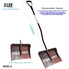 Obvezen del zimske opreme! -75% na kvalitetno ergonomsko lopato SILEN (1,3 kg), širina 41 cm x višina 33 cm, dolžina ročaja: 112 cm! Razbremeni vašo hrbtenico, zmanjša pritisk na roko-zapestje in zmanjšuje vaš priklon! Izjemno lahka ter odporna na udarce in sol!