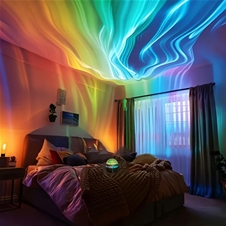 Svetilka projicira zvezdnato nebo, severni sij in svetlobne učinke, ki ustvarijo očarljivo atmosferov vsakem prostoru. Vaša soba se v trenutku spremeni v pravljično vesolje, polno barv in čarobnosti.