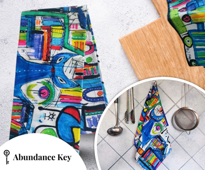 Popestrite svojo kuhinjo z edinstveno energijsko kuhinjsko krpo, ki združuje umetnost dr. Jožice Fabjan in moč simbolov, barv ter starodavnih run. Motiv energijske slike je natisnjen na kakovostno blago ter podpira bogastvo, obilje in manifestacijo življenjskih ciljev.