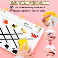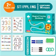 - Ponudba vsebuje: 1x TracingBook, otroški delovni zvezek, ki je primeren za večkratno uporabo (64 strani) + 6x čarobni flomaster + 1x gobica.
