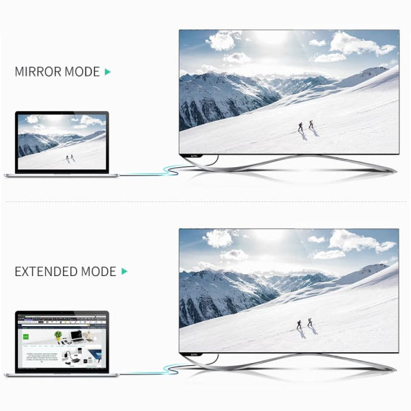USB-C v HDMI kabel omogoča stabilen prenos slike in zvoka v ločljivosti do 4K pri 60Hz, brez zamikov ali izgube podatkov. Podpira tudi ločljivosti 1080P, 1080I in 720P, kar zagotavlja široko združljivost z različnimi napravami in zasloni.