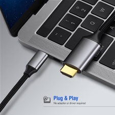 Kabel deluje po načelu plug-and-play, zato ne potrebuje dodatnih gonilnikov ali programske opreme. Preprosto ga priključite na USB-C napravo in HDMI zaslon ter takoj uživajte v vsebinah na večjem monitorju, televizorju ali projektorju. Idealen je za delo, igranje iger, predstavitve in pretakanje videov.