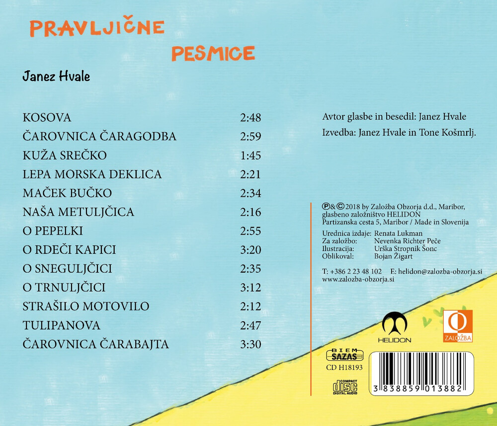 Zgoščenka z naslovom Pravljične pesmice vsebuje trinajst otroških pesmic s pravljičnimi liki. Gre za pravljične pesmice za vnučke babic in dedkov avtorjeve generacije. Besedila vseh pesmic so natisnjena v priloženi knjižici. Avtor glasbe in besedil je Janez Hvale, avtor in soavtor več kot 600 glasbenih del, član kar nekaj zasedb, med njimi član in ustanovitelj skupine 12. Nadstropje in nekajletni član Ansambla Lojzeta Slaka. Izvedba: Janez Hvale in Tone Košmrlj.