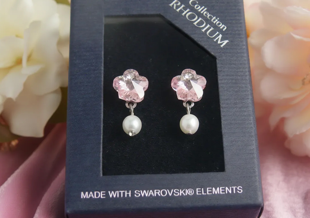 - Ponudba vsebuje: 1x par ročno izdelanih uhanov Pink Flower s Swarovski kristalom (velikosti 1,1 x 2,1 cm) v originalni škatlici Made with Swarovski elements.