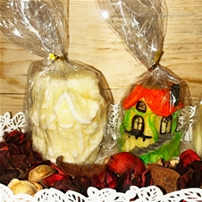 • Ponudba vsebuje: 1x dekorativno dišečo svečo v obliki hiške iz naravnega voska po izbiri. Na voljo s poslikavo ali brez ter v dišavi: vanilija ali jasmin. Ročno izdelana, opremljena z bombažnim stenjem za enakomerno in prijetno gorenje. Dimenzije: višina: cca 8–10 cm; širina: cca 5,2–6,5 cm.