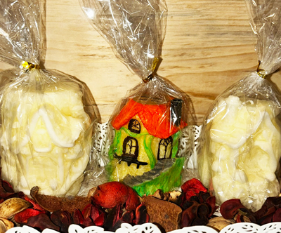 Skulptura – dekorativna dišeča sveča v obliki hiške iz naravnega voska