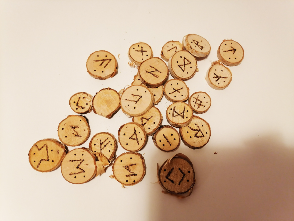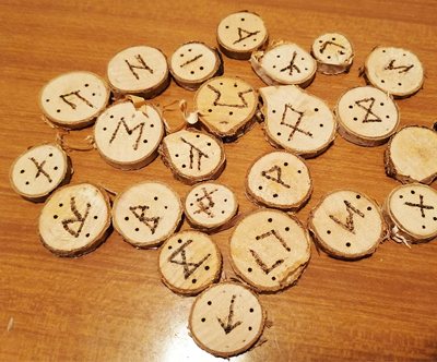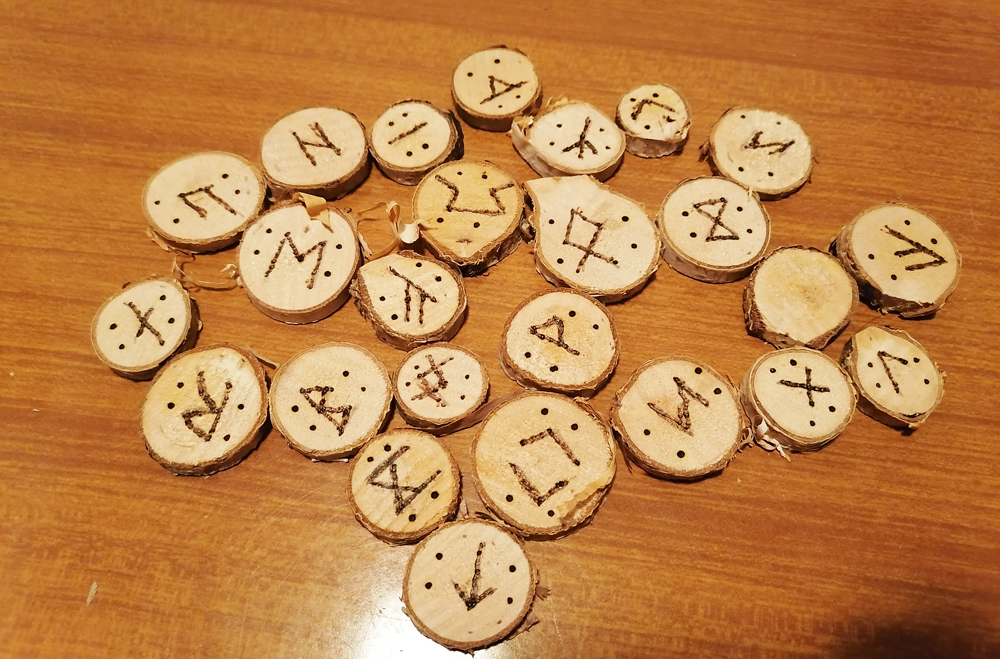 - Ponudba vsebuje: 1x komplet ročno izdelanih lesenih run + mošnjiček za shranjevanje.