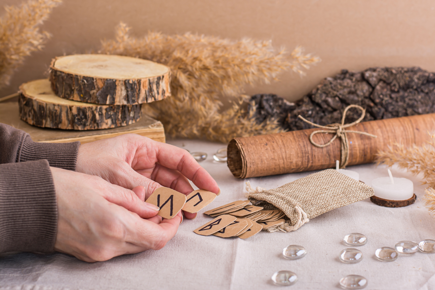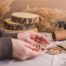 Ročno izdelane rune so edinstven preplet starodavne nordijske simbolike in sodobne osebne rasti. Vsak komplet je skrbno oblikovan iz lesa, ter ročno graviran z namenom, da nosi svojo energijo, toplino in pristnost. Namenjene so meditaciji, intuiciji, vedeževanju ali kot poseben talisman, ki te spremlja na tvoji poti. Ker je vsak kos unikaten, rune niso le orodje – so osebna zgodba, majhen ritual in čudovit dar za vse, ki cenijo tradicijo, duhovnost in ročno izdelano umetnost.
