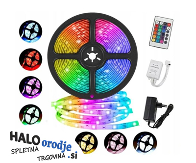 - Ponudba vsebuje: 1x vodoodporen 5 metrski LED trak RGB IP65 + 1x originalni blister + 1x napajalnik + 1x daljinski upravljalnik + 1x gonilnik.