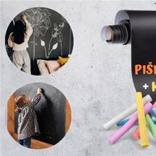 - Ponudba vsebuje: 2x +1x GRATIS stensko nalepko "piši briši" (200 x 45 cm) + komplet kred (2 beli in 3 barvne). Večnamenska črna samolepilna tabla po kateri lahko s kredo pišete in rišete. Večkrat se lahko odlepi in ponovno prilepi, ne pušča sledi lepila, lahko jo prilagodite glede na površino.