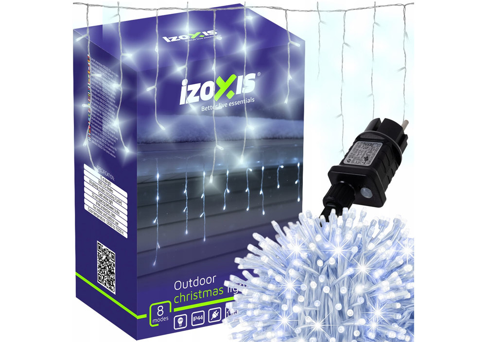 S 300 hladno belimi LED diodami in dolžino 15 metrov bodo te luči IZOXIS ustvarile edinstveno, sijoče vzdušje – bodisi v vaši dnevni sobi, na balkonu, terasi ali fasadi. Osem načinov osvetlitve, vključno z učinkom bliskavice, vam omogoča, da svetlobo prilagodite svojemu razpoloženju – od nežnega utripanja do prave praznične pojedine!