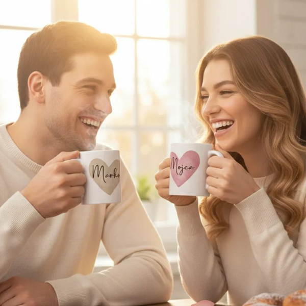 Iščete darilo za dan žena, ki bo resnično nekaj posebnega? Namesto rož, ki hitro ovenijo, ji letos podarite tisto najdragocenejše – vajin skupni čas. Izberite romantičen darilni set dveh personaliziranih skodelic z imenoma in motivom, ki pove več kot 1000 besed. Vsako jutro ali popoldne, ko si bosta nalila najljubšo kavo ali čaj, se bosta spomnila, da so trenutki v dvoje tisti, ki štejejo največ. Prejmete v lični darilni škatlici – pripravljeno za obdarovanje! Hitra dostava!