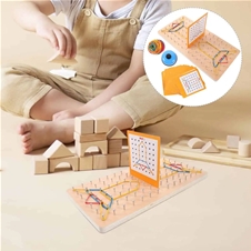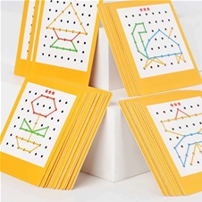 Odlična izbira za zabavo in učenje hkrati! SUPER CENA za geometrijsko miselno igro Battle za 2 igralca: lesena plošča z žebljički + komplet elastik + komplet kartic + zvonček! Poštnina je brezplačna!