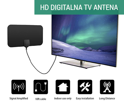 -60% na notranjo HD digitalno anteno za televizor za sprejem brezplačnih digitalnih kanalov, tudi v visokih ločljivostih (HDTV, 720p, 1080i, 1080p in 4K). Antena je združljiva s vsemi vrstami TV pretvornikov in z digitalnimi televizorskimi sprejemniki! Poštnina je brezplačna!