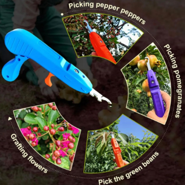 Škarje so odlične tudi za obiranje sadja in zelenjave, kot so grozdje, paprika, paradižnik in podobni pridelki, saj zagotavljajo čist rez brez trganja rastlin. Posebno zasnovano kavljasto rezilo omogoča natančnost, medtem ko vgrajeni odpirač za steklenice in ravno rezilo za standardno rezanje ali cepljenje rastlin poskrbita za praktično 3v1 orodje.