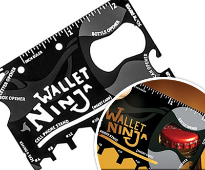 Wallet Ninja je popolno orodje za vrsto različnih priložnosti in rešitev cele serije potencialnih problemov, na katere lahko naletite v vsakdanjem življenju - nosite pa ga lahko kar v denarnici, saj ni večji od kreditne kartice! 18 orodij v enem samem pripomočku iz nerjavečega jekla!