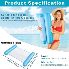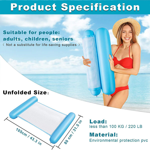 Kombinacija trpežnega PVC-ja in vzdržljive najlonske mreže zagotavlja stabilnost, dobro nosilnost in dolgo življenjsko dobo. Blazina je izjemno praktična, saj se enostavno zloži tudi napihnjena, kar omogoča enostavno prenašanje in shranjevanje.