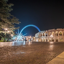 Odhod avtobusa iz Ljubljane ob 5. uri zjutraj. Vožnja z vmesnimi postanki na obalo Gardskega jezera, v romantični Sirmione. Sprehodili se bomo po slikovitem letovišču z labirintom ozkih ulic, s številnimi hoteli, kopališči, zdravilišči ter čudovitimi parki, po želji bomo obiskali grad Rocca Scaligere iz 13. stol. in se sprehodili mimo vile, kjer je nekaj časa živela tudi slovita operna pevka Maria Callas. Po želji in za doplačilo se bomo z ladjico popeljali in si rt ogledali še z jezerske perspektive. Vožnja v eno najbolj ljubkih severno-italijanskih mest, v Verono. Popoldan bomo preživeli na živahnih mestnih ulicah, kjer se je nekoč odvijala najbolj znana Shakespearova ljubezenska zgodba med Romeom in Julijo. Videli bomo trg Bra z Areno, enega največjih ohranjenih rimskih amfiteatrov, Levja vrta, trg delle Erbe, grad in grobnice družine Scaligeri ... Sprehodili se bomo do Julijine hiše z znamenitim balkonom. Prosto pozno kosilo in uživanje v dobrotah, ki so značilne za Italijo. V predbožičnem času ne smete pozabiti poskusiti božičnega veronskega kruha, Pandoro, vina brulé, bombardina ali vroče čokolade in se sprehoditi po očarljivih stojnicah božičnega sejma, na Piazza dei Signori, Cortile Mercato Vecchio in Cortile del Tribunal, kjer bodo na voljo različni izdelki domače in umetne obrti, drobna darilca, kulinarične dobrote, okusni topli napitki …Počakali bomo še na prižig mnogih prazničnih lučk in zvezde nad Areno, ki bo osvetlila trg Bra. V pozno popoldanskih / zgodnjih večernih urah se bomo odpravili proti Sloveniji, kamor bomo prispeli v večernih urah.