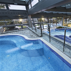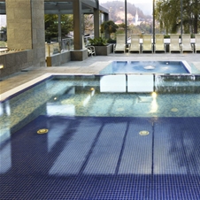 Bazenski kompleks Wellnessa Živa obsega šest bazenov in notranji tobogan s pogledom na Blejsko jezero.