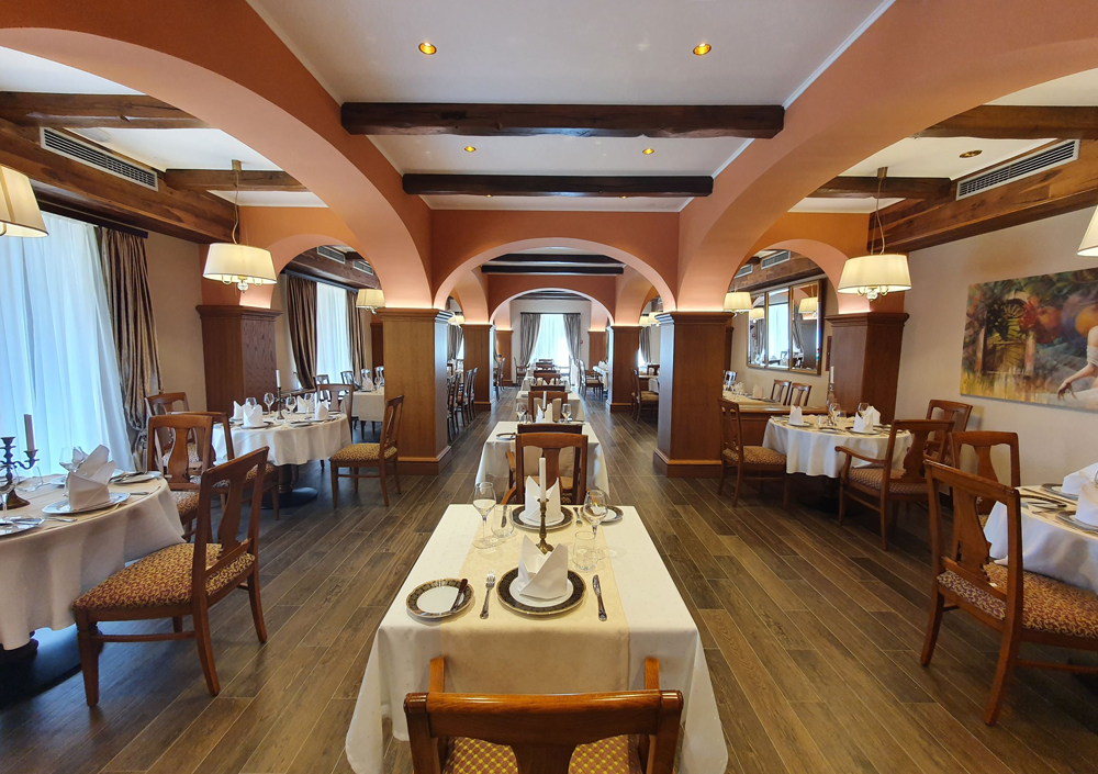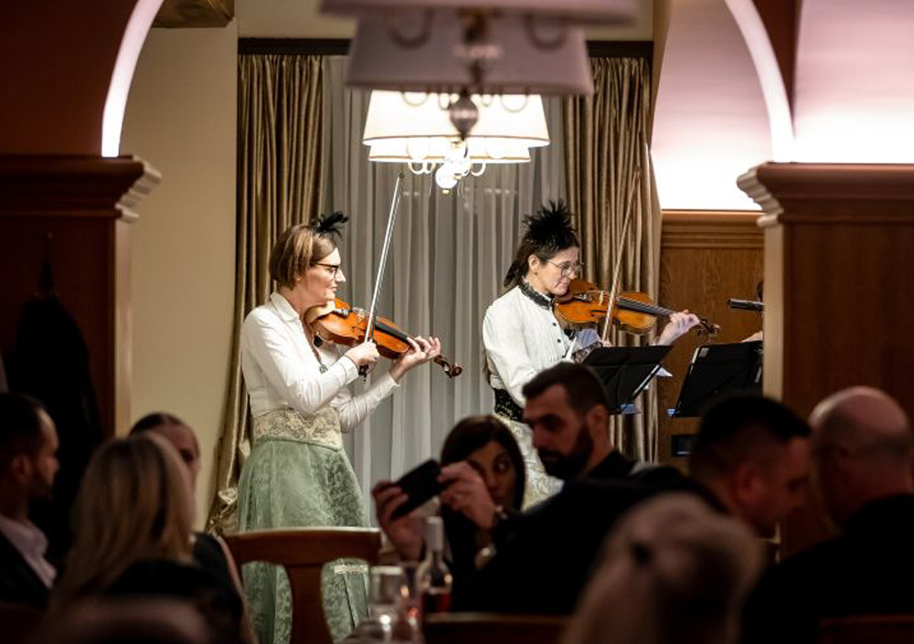 Vajin večer se začne v veličastnem ambientu dvoranske restavracije, katere zidovi še vedno hranijo odmeve razkošnih plemiških večerij in zabav. Ob migetajoči svetlobi baročnih sveč in romantičnih notah žive glasbe vaju pričaka à la carte večerja v sedmih hodih – prava simfonija okusov.