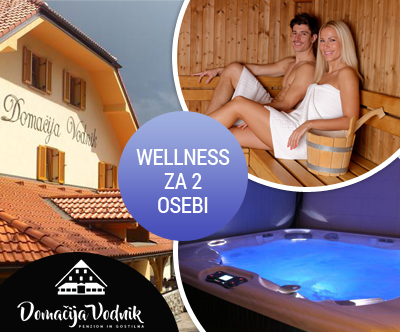 - Ponudba vsebuje: 1x 2-urni romantični zakup wellnessa (finska savna in jacuzzi) + čaj in sadje za 2 osebi na Domačiji Vodnik.