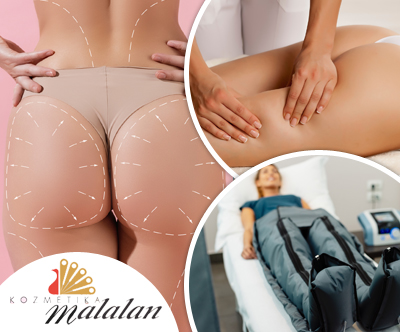 - Ponudba vsebuje: 10x + 1x GRATIS učinkovit 90-minutni anticelulitni paket za preoblikovanje telesa v kozmetičnem salonu Malalan: anticelulitna masaža (30 min) + nanos kreme + body wrapping + strojna limfna drenaža - pressomat.
