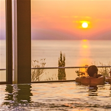 Najbolj privlačen del Paradise Spa je bazen z nepozabnim pogledom na Piranski zaliv in odprto morje, ki ga polni ogrevana morska voda. Sproščanje v bazenu je odličen zaključek rajske izkušnje!