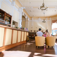 Prijetna hotelska restavracija ponuja izvrstno izbiro svežih domačih jedi in sladkih specialitet iz njihove slaščičarne. V kavarni Palme pa se lahko razvajate z okusnimi domačimi pecivi in se naužijete svežega morskega zraka na terasi.