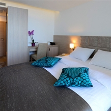 Moderno urejena dvoposteljna soba, ki zagotavlja popolno udobje. Z veliko dnevne svetlobe je soba opremljena z vsemi sodobnimi dodatki, ki jih morda potrebujete. V sobi je francoska postelja ali dve ločeni postelji, kopalnica, mini bar, LCD TV, direktna telefonska linija, Wi-Fi.