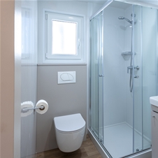 Deluxe mobilna hiška predstavlja odličen pobeg za počitek. Stopite na veliko teraso in odkrijte svojo zasebno zunanjo oazo. Velika jedilna miza vas vabi k večerji na prostem, obdani z naravnimi lepotami kampa. Sprostite se na ležalniku, uživajte v toplem soncu ali zvečer opazujte zvezde: terasa je vsestranski prostor, namenjen vašemu največjemu užitku.