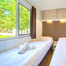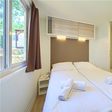 Mobilne hišice se nahajajo na atraktivni lokaciji, v senci hrastovega gozda in na urejenih parcelah le 15 metrov od morja. Popolnoma opremljene in klimatizirane mobilne hišice imajo 24 m2, dve ločeni spalnici, kopalnico, WC in dnevno sobo ter popolnoma opremljeno kuhinjo. Parkirni prostor za vaš avto se nahaja ob mobilni hiški. Na veliki opremljeni terasi z vrtno garnituro lahko uživate v nepozabnih sončnih zahodih.