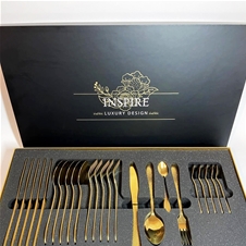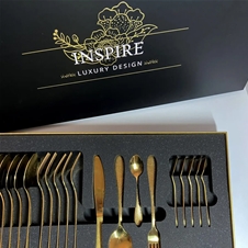 - Ponudba vsebuje: 1x 24-delni prestižni jedilni pribor Dragon Scale z motivom zmajevih lusk v zlati barvi: 6 nožev (23 cm) + 6 vilic (20,5 cm) + 6 žlic (20,5 cm) + 6 čajnih žličk (13,5 cm). Narejeno iz nerjavečega jekla in metalizirano.