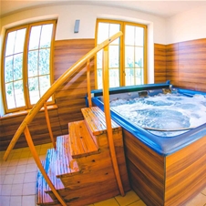 V sklopu wellness centra se nahaja plavalni bazen velikosti 20 m dolžine in 6,5 m širine. Bazen je primeren tudi za neplavalce. Od 0,85 m globine do 1,30 m globine.V bazenu se nahaja tudi protitočno plavanje in podvodna masaža. Temperatura vode v bazenu je 28-30 °C. Bazen je posebno lep ponoči, ko vključimo podvodno razsvetljavo, kar pričara romantično vzdušje. Poleg bazena stoji masažna kad (jacuzzi) za 6 oseb. V masažni kadi je 100 šob, ki vas prijetno zmasirajo.