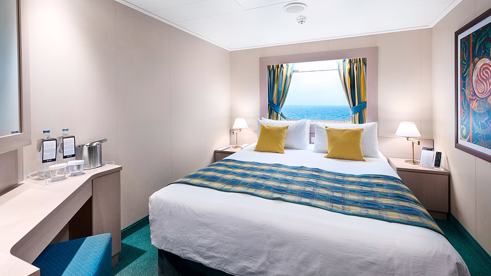 Površina zunanje kabine z oknom je od 15-17 m2. Kabine nudijo zakonsko posteljo, ki se lahko pretvori v dve ločeni ležišči, kopalnico s tušem in wc, interaktivno televizijo, možnost uporabe interneta (doplačilo po ceniku), telefon, mini bar in sef. Imajo možnost 2 pomožnih ležišč. Zunanje kabine z oknom so v zlati sredini. Nudijo odlično razmerje med ceno in udobjem. Nahajajo se na prvih palubah namenjenim gostom.