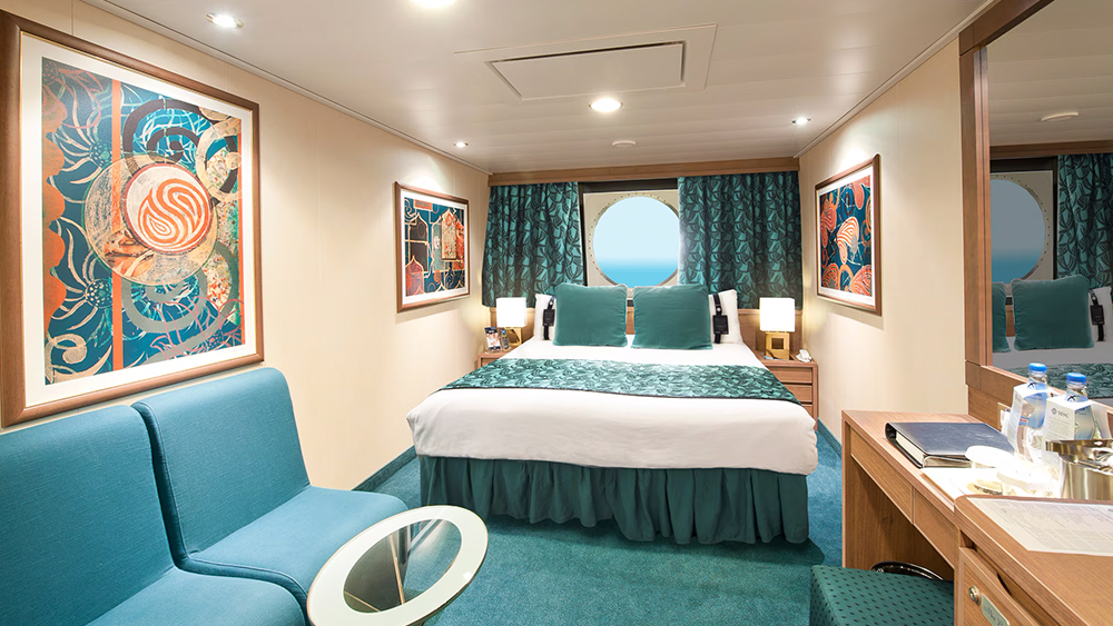Površina zunanje kabine z oknom je od 15-17 m2. Kabine nudijo zakonsko posteljo, ki se lahko pretvori v dve ločeni ležišči, kopalnico s tušem in wc, interaktivno televizijo, možnost uporabe interneta (doplačilo po ceniku), telefon, mini bar in sef. Imajo možnost 2 pomožnih ležišč. Zunanje kabine z oknom so v zlati sredini. Nudijo odlično razmerje med ceno in udobjem. Nahajajo se na prvih palubah namenjenim gostom.