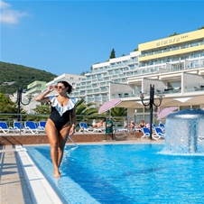 Počitnice za 2 osebi v hotelu Mimosa Lido Palace 4* v Rabcu: 1x nočitev s polpenzionom plus v standard sobi 2 s pogledom na morje + pijača ob večerji + uporaba 4 zunanjih bazenov + tobogani ob zunanjem bazenu pred hotelom Narcis + uporaba fitnesa v hotelu Hedera!