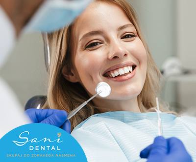 Zdrav nasmeh! SUPER CENA za čiščenje zobnega kamna v ordinaciji Sani Dental v Domžalah: čiščenje zobnega kamna nad in pod nivojem dlesni + poliranje + pregled zob, dlesni, ustne sluznice, žvečnih mišic in čeljustnega sklepa!