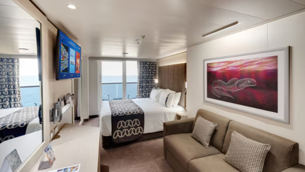 Kabine z zasebnim balkonom so površine od 17-23 m2. Kabine nudijo zakonsko posteljo, ki se lahko pretvori v dve ločeni ležišči, kopalnico s kopalno kadjo ali tušem in wc, interaktivno televizijo, možnost uporabe interneta (doplačilo po ceniku), telefon, mini bar in sef. Imajo možnost 2 pomožnih ležišč. Kabine z balkonom veljajo za najsvetlejše. So enkratna izbira za goste, ki zraven večjega prostora uživajo tudi v zasebnosti na prostem.