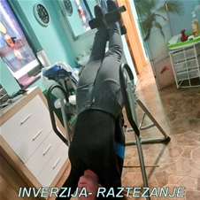 Raztezanje hrbtenice na inverzijski mizi za naravno olajšanje bolečin in izboljšanje gibljivosti.
