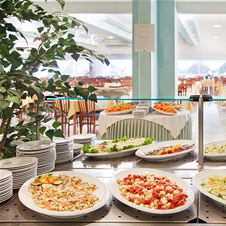 Samopostrežni zajtrk in večerja sta na voljo v hotelski restavraciji ter neomejena pijača iz avtomata med večerjo: voda, vino, pivo, sok, kola. Z doplačilom so na voljo še Aperitiv bar, Pizza & Grill Oliva, a la carte restavracija Ancora in Hedera Club bar. Z doplačilom je na voljo tudi all inclusive storitev v enem izmed hotelov Maslinice v obdobju od 5.6.-5.9.