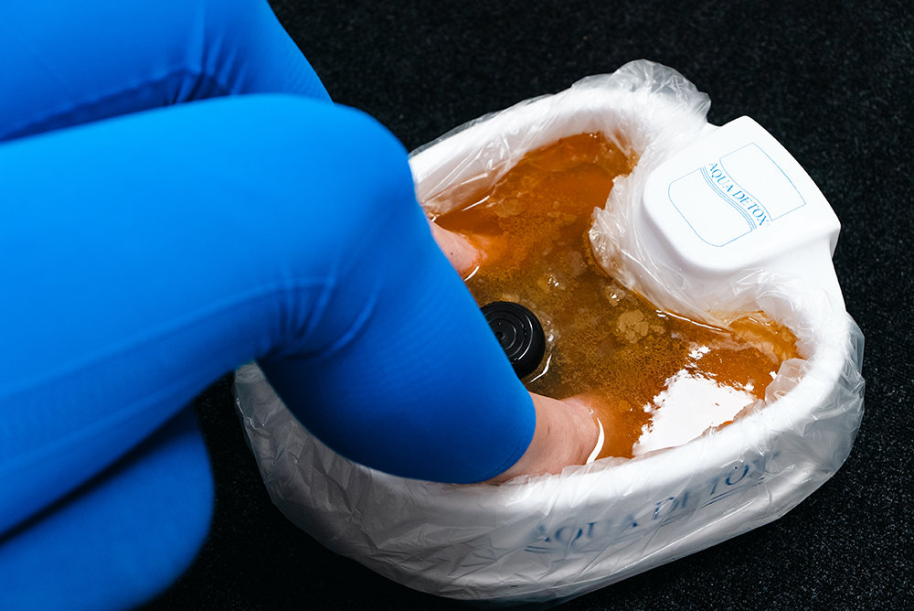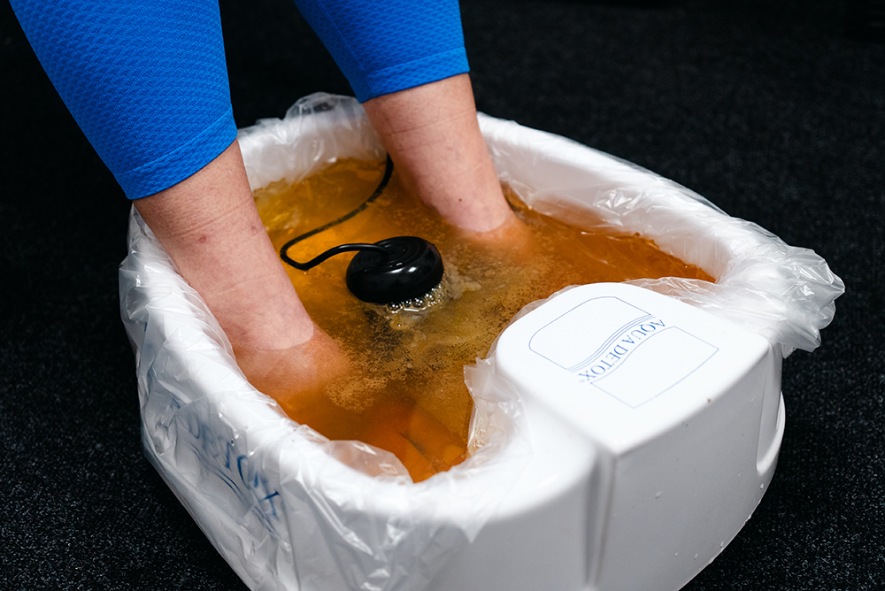 Aqua Detox je sproščujoča terapija, ki spodbuja telo k naravnemu izločanju toksinov preko stopal. Stopala vsebujejo več kot 2000 por, skozi katere lahko telo izloča odvečne snovi. Med tretmajem so stopala namočena v toplo vodo s posebno solno raztopino in elektrodnim sistemom, ki ustvarja ionizirano okolje.
