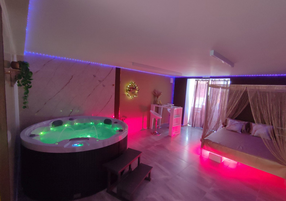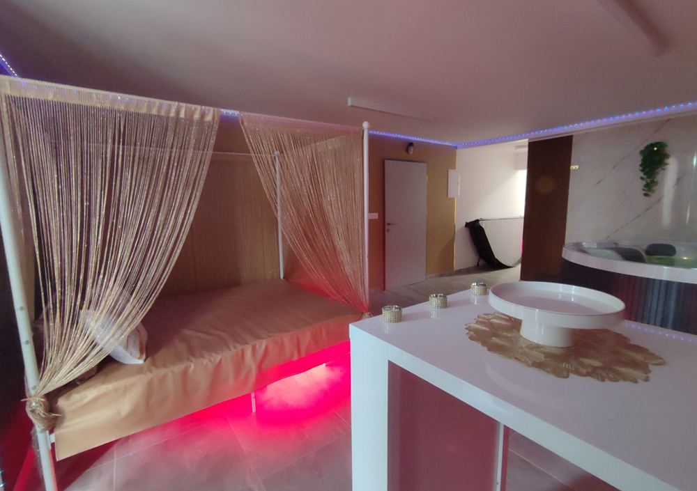 Samo vidva, lastni vhod s PIN kodo in dve uri čiste ljubezni: velik razkošen jacuzzi le dva metra od romantične postelje, finska in IR savna, parna & masažna tuš kabina, masažni ležalnik ter postelja za popolne objeme. Vse neomejeno samo za vaju.